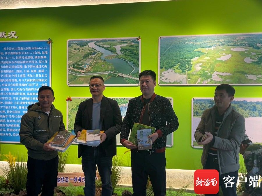 海口市湿地保护管理中心向园区赠送了一批湿地相关书籍。记者 谭琦 摄